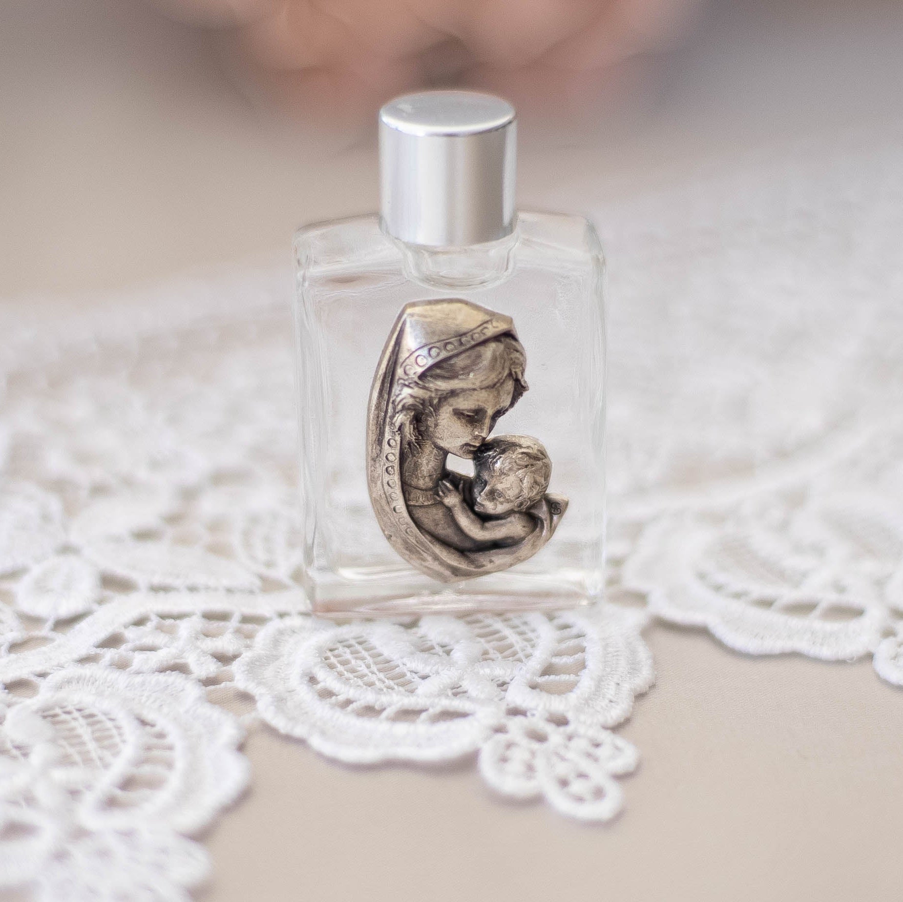 Glass bottle with image of Our Lady for Holy Water