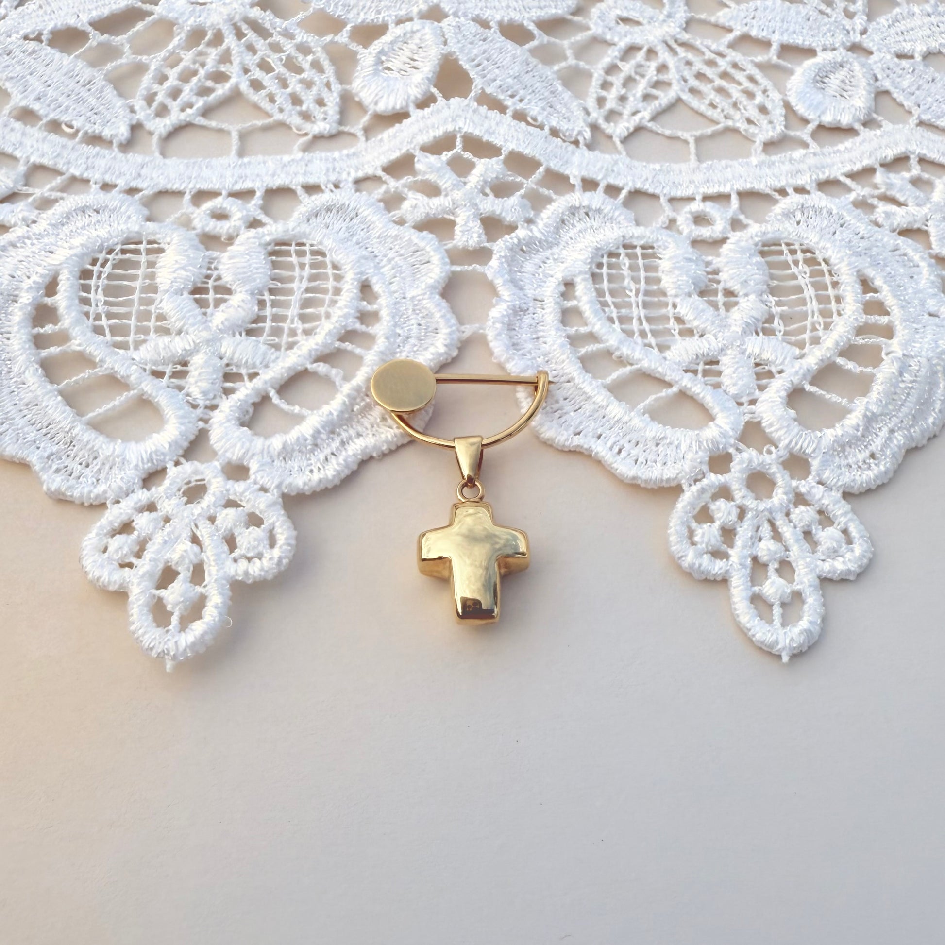 Our gorgeous 14K Gold Bubble Cross with tiny Pin ensemble, is a delicate, faith-filled accessory — perfect for baptisms, christenings, or baby’s first blessing.